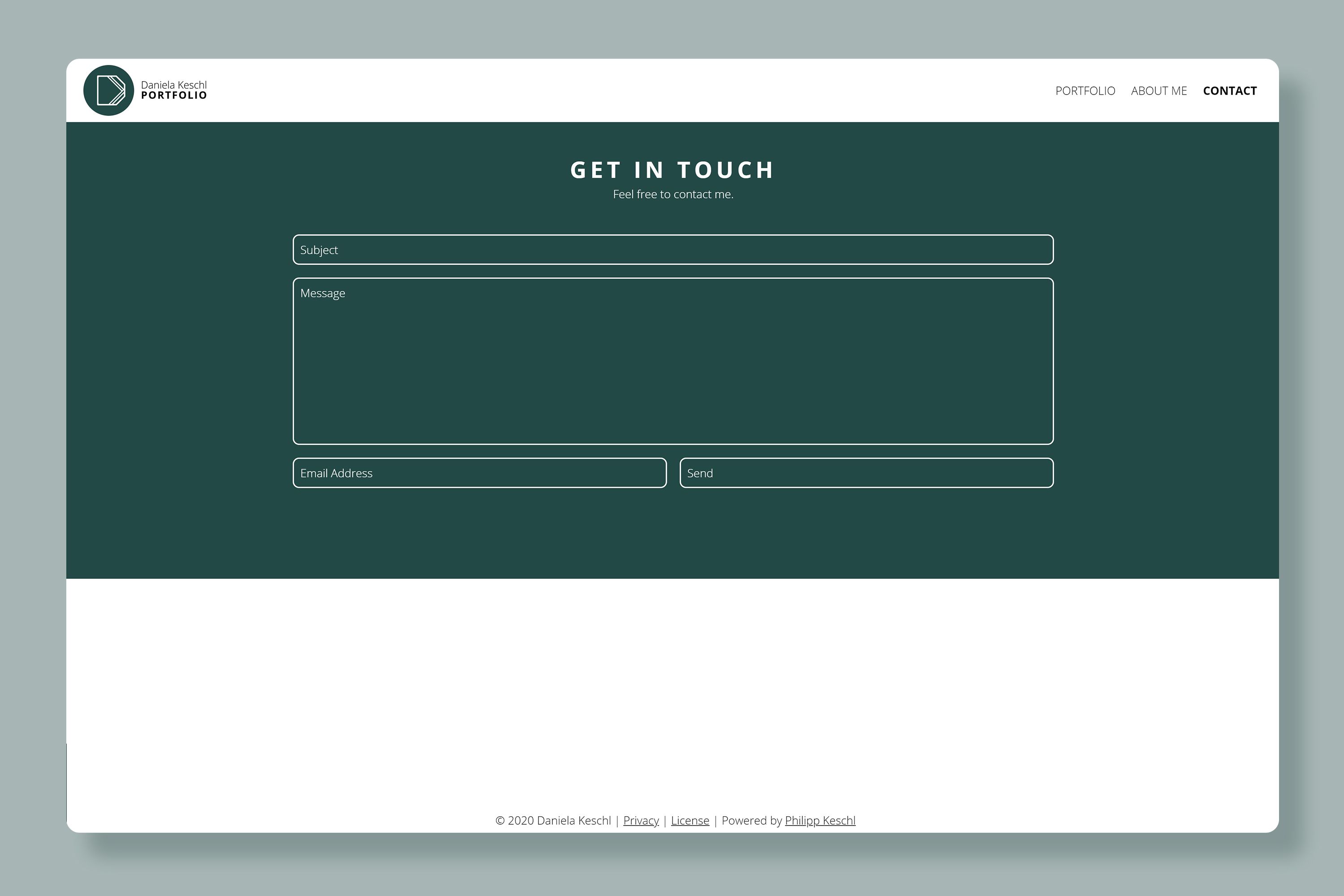 The final logo consists of my Initials the "D" and "K". The lines should not only represent the "K" vertically flipped but also create an arrow that points to the right representing moving forward. For the background I used a filled green colored (#234946) circle. As one can see below there are different versions of the logo for a variety of areas. The first one is just the green circle with the white initials.The next one is for the favicon and the colors are inverted because depending on the viewers browsers (dark mode on or off) the green would not be visible enough because of the low contrast between the grey and green. The last two versions are the logos with the text next to them were one was used for the desktop version of the website and the other one for the mobile version. The difference is that the text of the mobile version is bigger to make it easier readable on smaller screens.