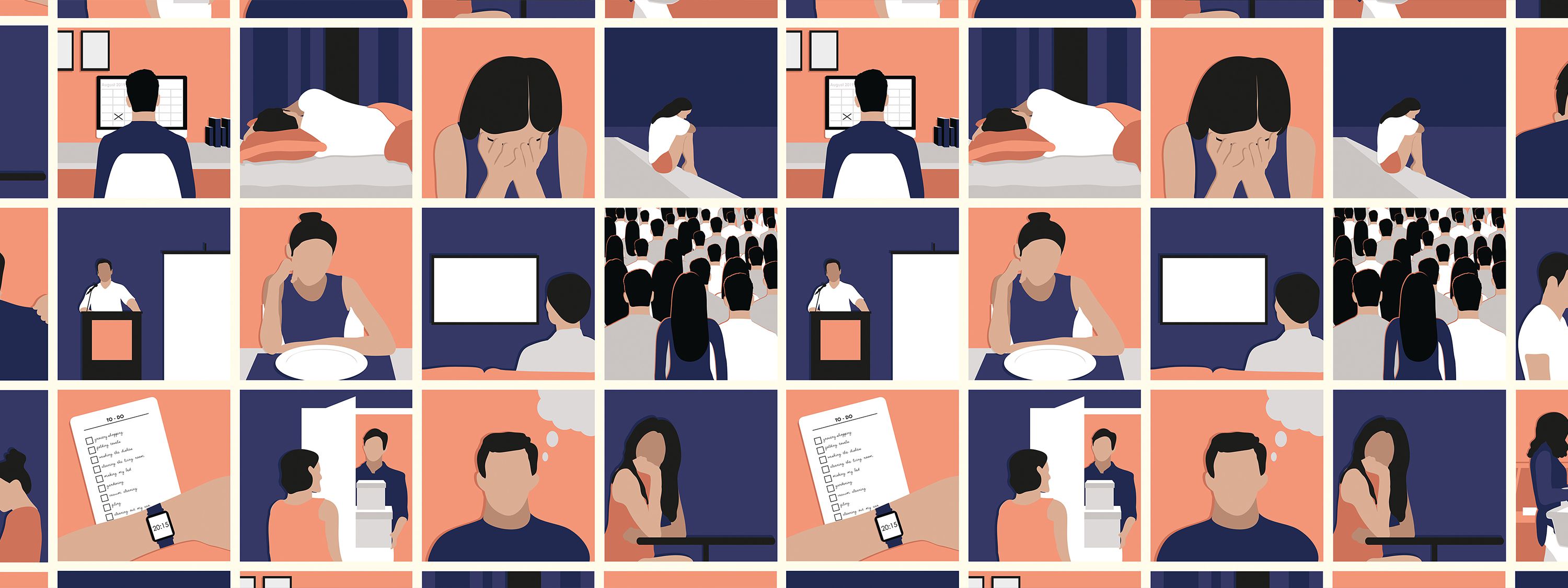 The booklet consists of three different categories. First there are ten facts about mental illness to roughly understand the seriousness of the topic, followed by illustrations that are created with only nine different colors in a very minimalistic style. The illustrations show different situations that people with mental illness face every day and also gives the opportunity to reflect your own life asking yourself if you were in multiple scenarios before. The images show people without faces. That was made on purpose because I didn‘t want to show emotions through the faces to avoid putting the focus point there. The last part of the book is made for everyone out there and is supposed to help improve your mental health. Ten things that everyone can implement in their life to keep being healthy. The fonts that were used in the project, the posters and the booklet are "Century Gothic" and "Copperplate Gothic Bold".